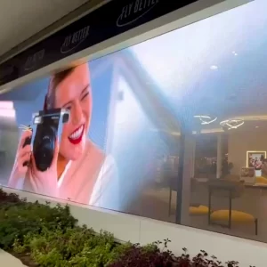 LED素子を透明フィルムで覆うことで、光の反射を効果的に抑制。明るい室内でも視認できます。映像の魅力を最大限に引き出し、情報伝達の効率を高めます。 - 窓ガラスがメディアに